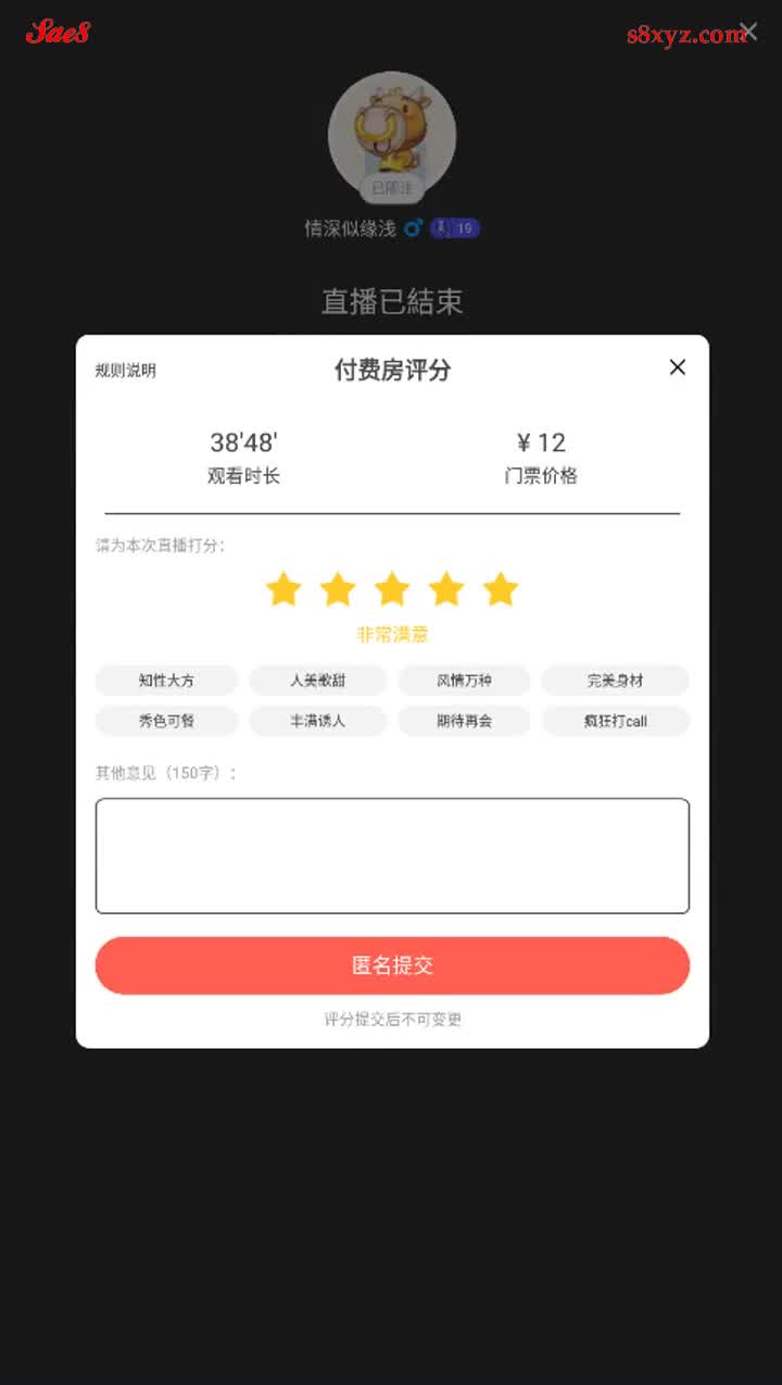 某鱼主播肉体犒赏榜一大哥